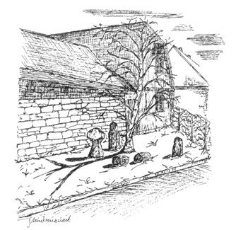 Dorfteiches ein Steinkreuznest, bestehend aus fünf